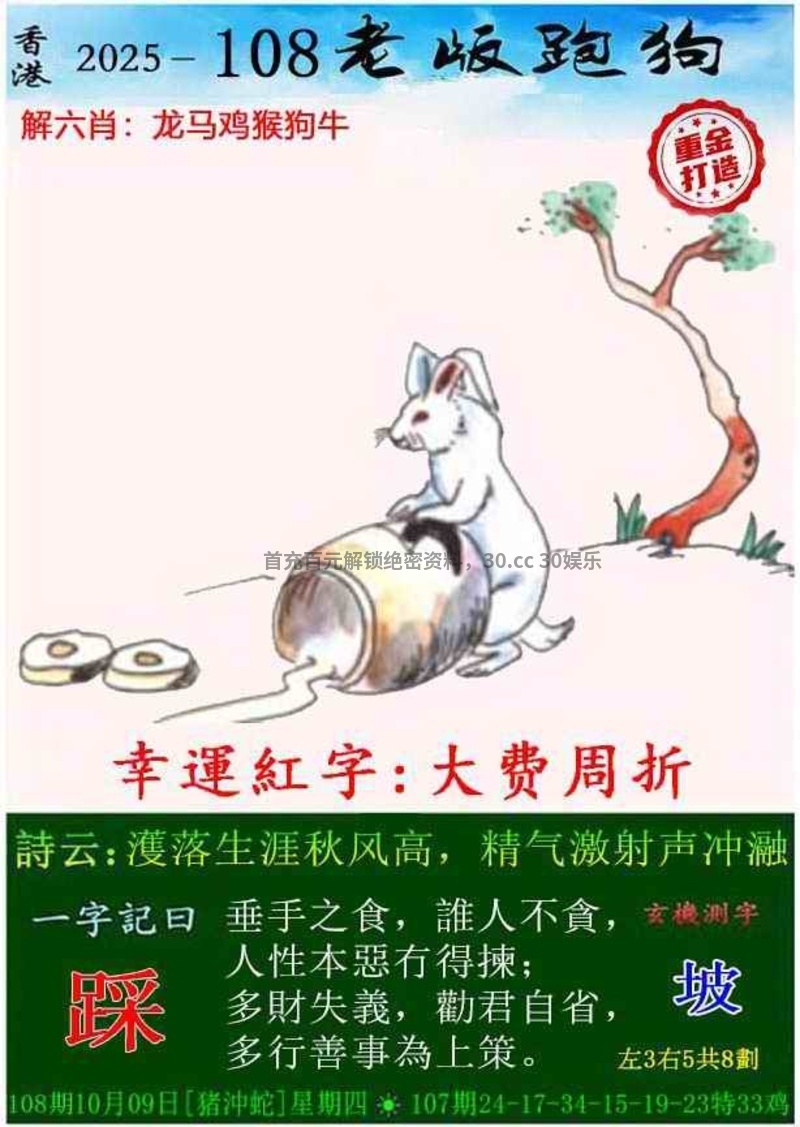 108期:吉凶两肖@凶丑+马鸡@开:猪07准 |
